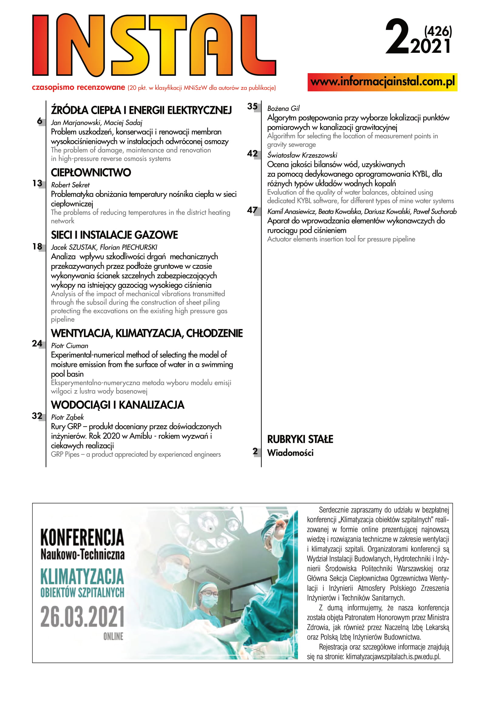 Boryczko K., Ocena skutków wyłączenia strategicznej magistrali wodociągowej, Instal 3/2020, s. 45-47.