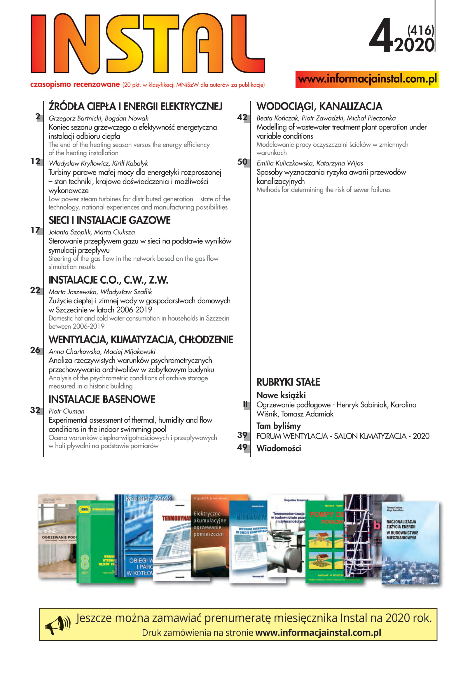 Jaszewska, M., & Szaflik, W. (2020). Zużycie ciepłej i zimnej wody w gospodarstwach domowych w Szczecinie w latach 2006-2019. INSTAL, 4, 22-25. https://doi.org/10.36119/15.2020.4.4